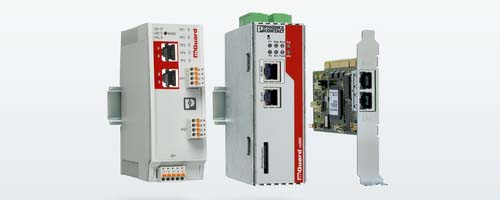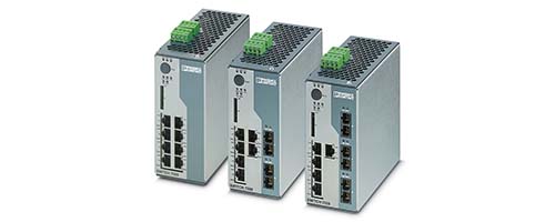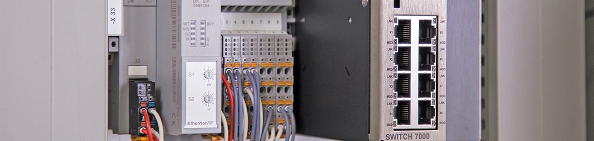 Phoenix Contact offers unmanaged Ethernet switches with a wide variety of port counts, different form factors, and fiber capabilities. Power over Ethernet (PoE) for devices like cameras and RFID readers is easily integrated into your network topology. Additionally, a wide array of managed Ethernet switches enables you to manage data traffic across networks, as well as provide advanced features like redundancy and network diagnostics.