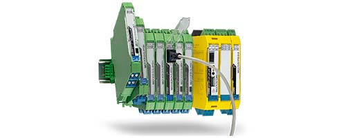 Safety controllers are ideal for applications using multiple standard safety sensors, as well as applications that need advanced or unique safety functionality. Using simple, drag and- drop, preconfigured function blocks, configuring safety logic is easy with Phoenix Contact’s completely free software. Finally, view safety online by connecting a network gateway module to get status bits back via Modbus TCP, EtherNet/IP, PROFINET, and PROFIBUS protocols.