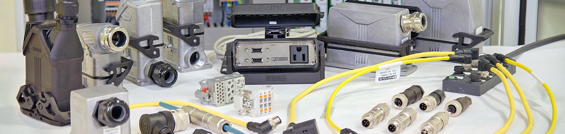 M12 and M8 circulars are the industry standard for sensors and actuators, such as proximity switches, photo eyes, and limit switches. Phoenix Contact offers pre-molded cable assemblies for connecting these power, data, and control signals. For legacy systems with pigtail sensors, field-wired connectors can be easily terminated to add a quick disconnect point. To support systems with many inputs, sensor boxes simplify wiring by combining signals locally, sending fewer homerun cables back to the control cabinet.