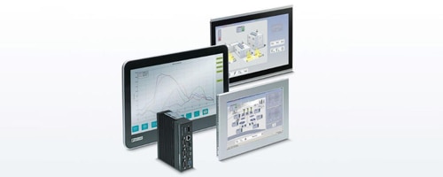 Industrial PCs from Phoenix Contact are available in a variety of performance classes, screen sizes, and form factors, such as blind-node configurations. Their powerful CPUs, fanless design, and nonrotating, solid-state drive options make them rugged and reliable, even in the most demanding applications. A wide variety of HMI operator panels, including wide-temperature, sunlight-readable versions, connect easily to third-party PLCs and programming. This allows you to display vital machine information and operate simple tasks.