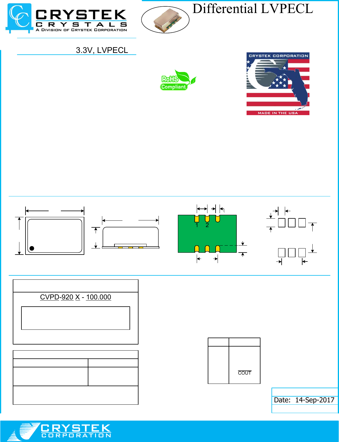 CVPD-920X-100.000 = 3.3V, 45/55, -40/85°C, 100.000 MHz
